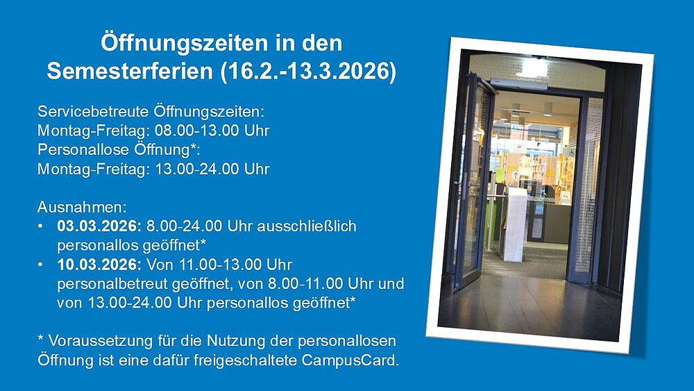 Hier finden Sie die personalbetreuten Servicezeiten und Informationen zur personallosen Öffnung.