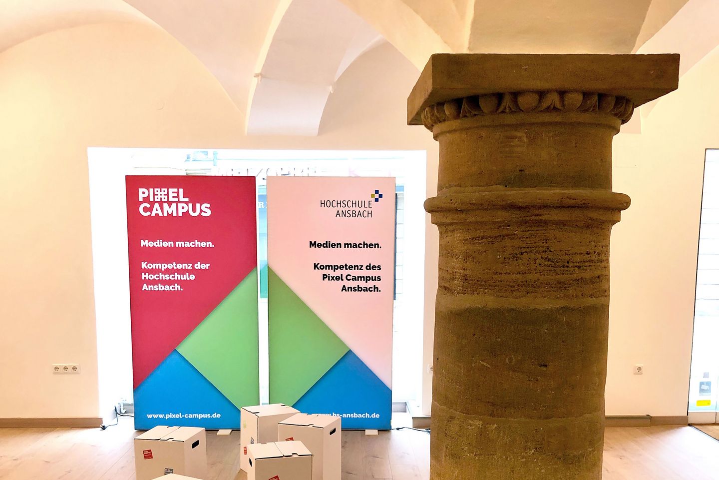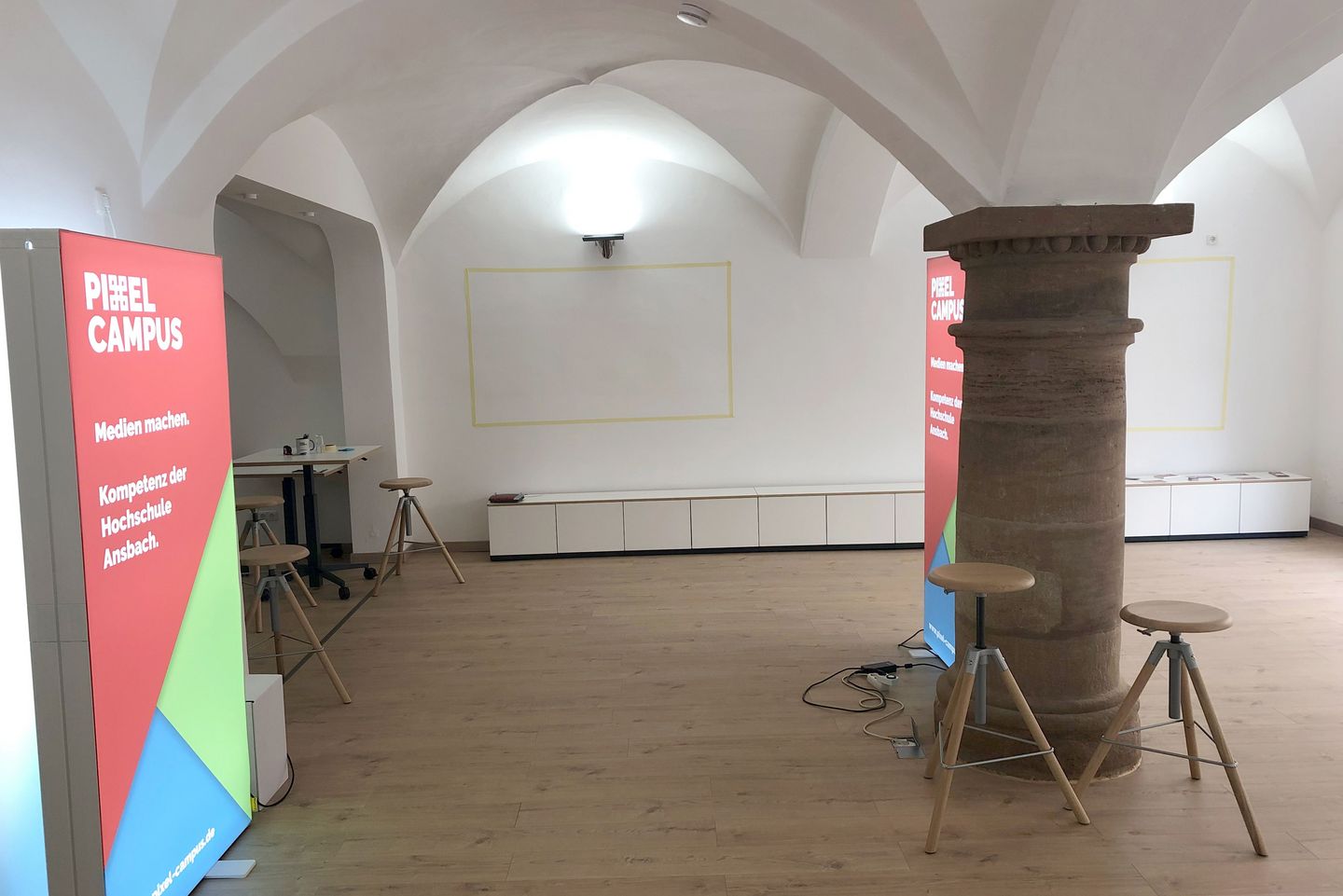 Zentraler in Ansbach geht es nicht: Zwischen Reitbahn und Rathaus findet man in einer der schönsten Straßen Ansbachs den Pixel Campus. Die schmucken Räumlichkeiten dienen als medialer Showroom der Hochschule. Gleichzeitig ist er die Schnittstelle für Kooperationen zwischen Studierenden, Unternehmen und Alumni.