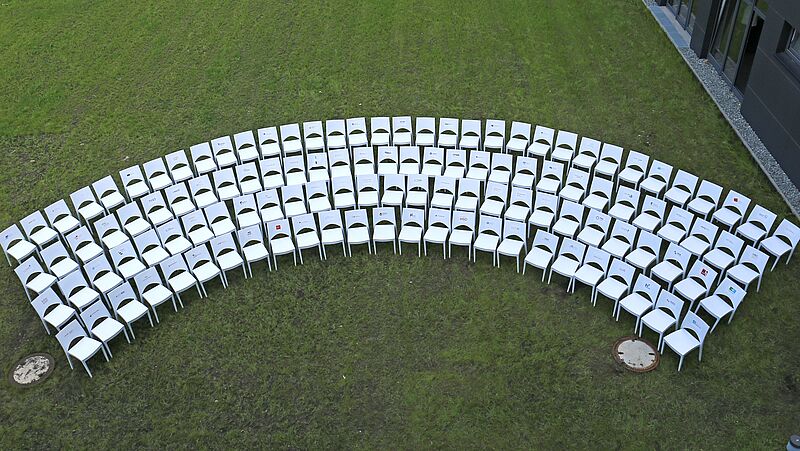 Zum 50-jährigen Jubiläum der Gattung „Hochschule für angewandte Wissenschaften“ / „Fachhochschule“ hat die Technische Hochschule Lübeck eine Installation erstellt, bei der Stühle mit den Logos der Hochschulen beklebt wurden, um die Studienplätze an deutschen (Fach-)Hochschulen bzw. Hochschulen für angewandte Wissenschaften zu symbolisieren.