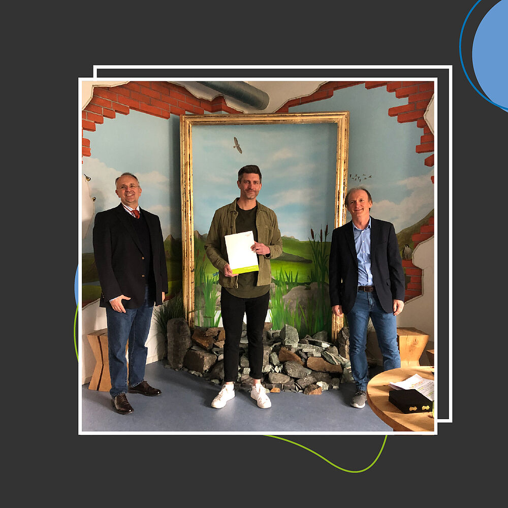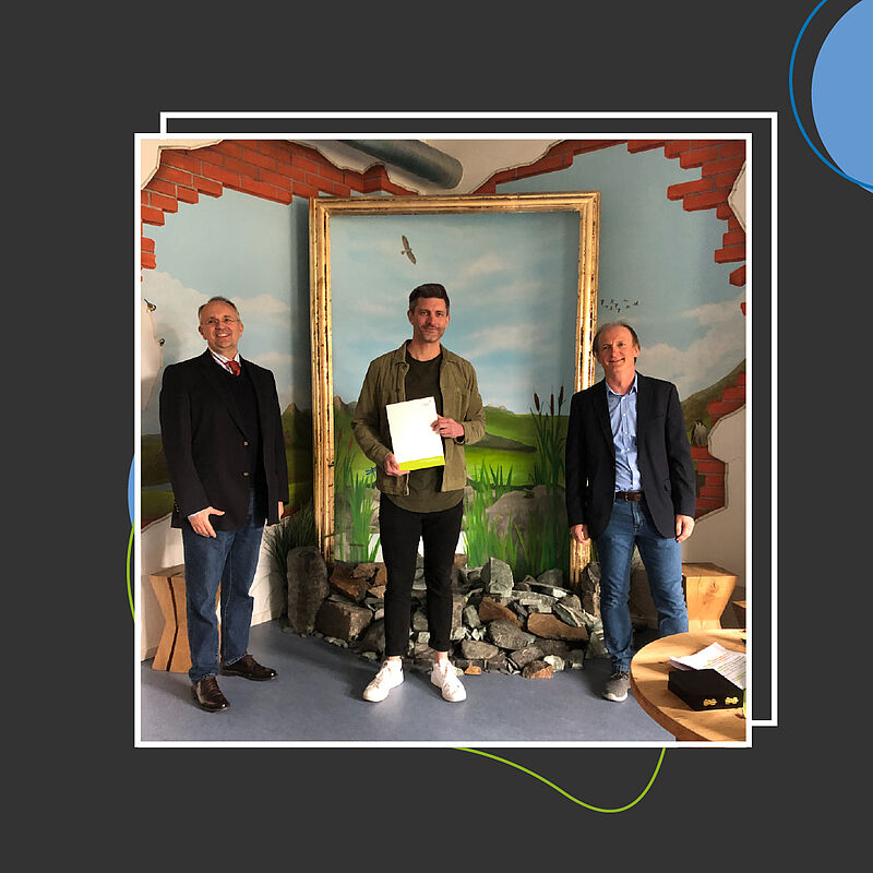 Geehrt wurde Rittmann von Prof. Dr. Jochem Müller (rechts im Bild), Studiengangsleiter von KMA, und Frank-Andre Schlipp (links im Bild), Geschäftsführer der School of Business and Technology.