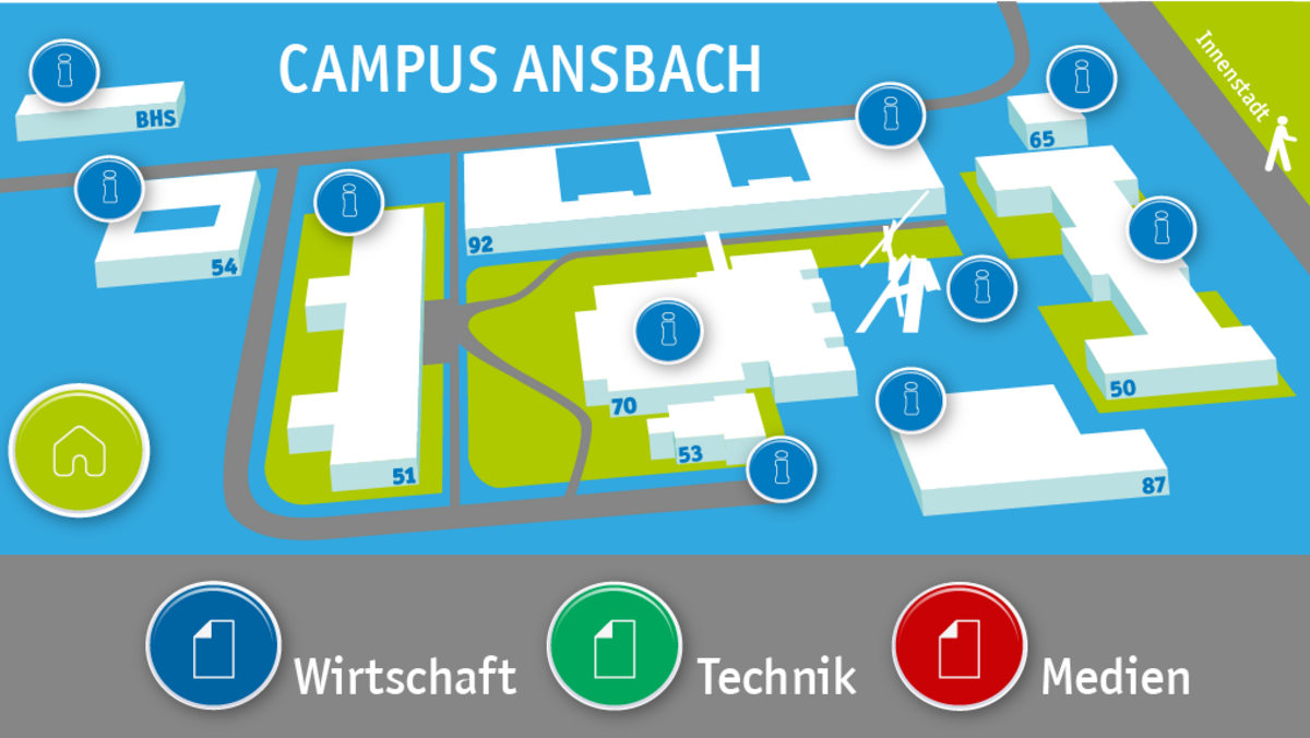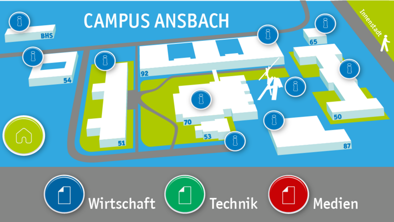 Denn jeder Interessierte hat ab sofort die Möglichkeit, unter www.hs-ansbach.de/herzlich-willkommen Ansbach mit seiner Hochschule virtuell zu erkunden. Im Zentrum dieses Angebots steht der Campus-Rundgang, auf diesem fast keine Nische des Geländes am Rande der Innenstadt unentdeckt bleibt. Mit einer interaktiven Karte ist die Navigation zwischen den verschiedenen Hochschul-Gebäude ganz einfach. Hinter jedem Klick auf ein Bauwerk verbergen sich interessante Informationen und eine Menge Bilder.