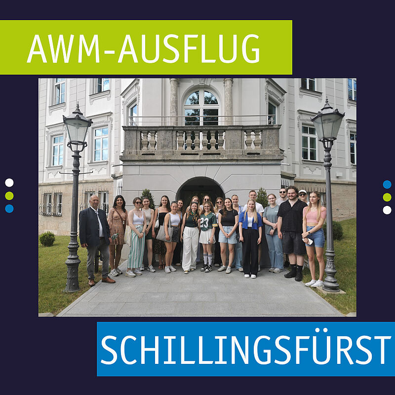 20 Studierende aus dem vierten Semester des Bachelors Angewandte Wirtschafts- und Medienpsychologie (AWM) besichtigten vor Kurzem die vielen Sehenswürdigkeiten in Schillingsfürst. Auf ihrer Tour durch die Stadt besuchten sie unter anderem den fürstlichen Falkenhof, das prachtvolle Schloss Schillingsfürst, den Kardinalsgarten und den über 300 Jahre alten Wasserturm.
