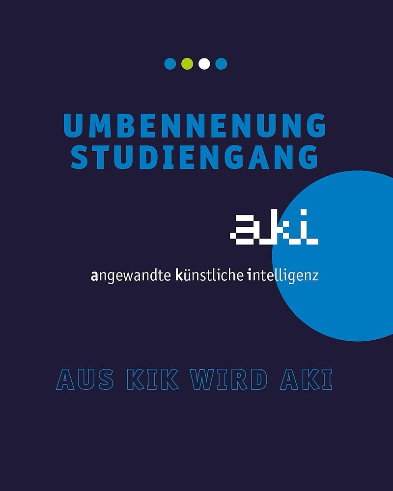 Der Bachelorstudiengang „Künstliche Intelligenz und Kognitive Systeme“ (KIK) heißt ab sofort „Angewandte Künstliche Intelligenz“ (AKI).