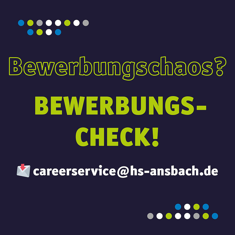 Egal ob Sie aktuell auf der Suche nach einer beruflichen Herausforderung sind oder bereits wissen, wo Sie beruflich hin möchten - der Career Service der Hochschule Ansbach unterstützt Sie sehr gerne bei der optimalen Vorbereitung Ihrer Bewerbung!