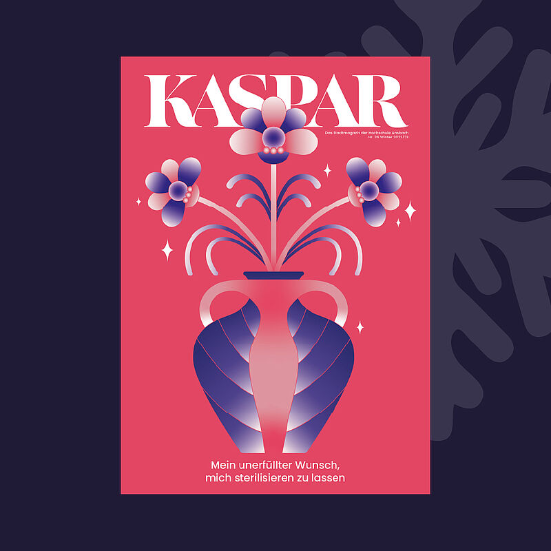 Die neue Ausgabe des KASPAR ist erschienen. Die 26. Ausgabe umfasst viele interessante Beiträge zu den unterschiedlichsten Themen: Unter anderem geht es um Sterilisation bei jungen Frauen und die Wohnungsnot in Ansbach. In der Rubrik „Ansbacher Originale" erfahren Sie, wie die Verkaufsstrategie von Angelika Walter auf dem Ansbacher Wochenmarkt aussieht. Welches indische Curry unsere Studentin Chadni Jain für unter fünf Euro zaubert, lesen Sie in der Rubrik „Erfolgsrezepte“.