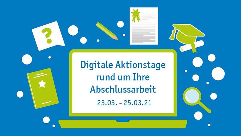 Vom 23.-25. März finden die digitalen Aktionstage rund um Ihre Abschlussarbeit von Bibliothek, Studierenden- und Career-Service statt.