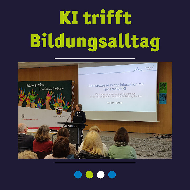 In ihrem Impulsvortrag stellte Prof. Dr. Marion Händel von der Hochschule Ansbach Ergebnisse zur Integration von KI im Bildungskontext vor. Die Teilnehmer hatten anschließend die Möglichkeit, sich in sieben interaktiven Fachforen mit Themen wie Medienkompetenz, der Nutzung von KI-Tutoren oder ChatGPT im Unterricht auseinanderzusetzen.