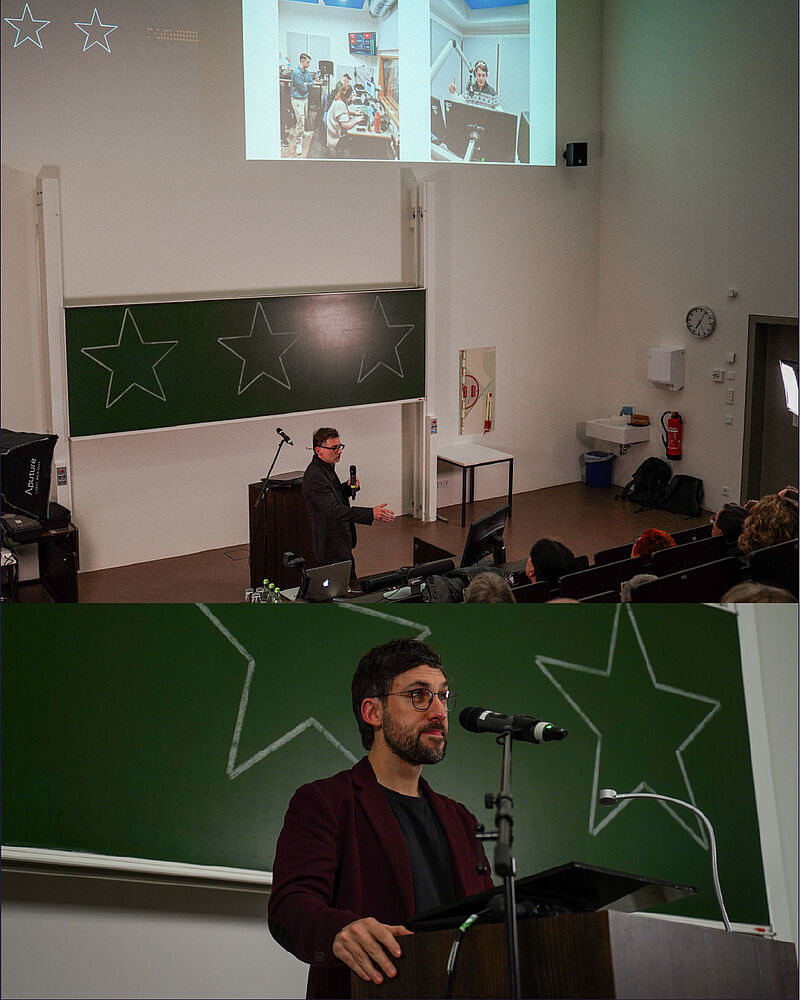 Nach der Begrüßung durch Hochschulpräsident Prof. Dr.-Ing. Sascha Müller-Feuerstein und den Dekan der Fakultät Medien Prof. Dr.-Ing. Rainer Schäfer folgte die erste Ehrung: Prof. Dr. Thomas Liesen und das Studierendenprojekt „Rabbit Radio“ wurden für den 2. Platz in der Kategorie „Bestes Campusradio 2024“ ausgezeichnet. Die Laudatio hielt Konni Winkler, Redaktionsleiter von Maxneo, der das Engagement des Teams hervorhob.
