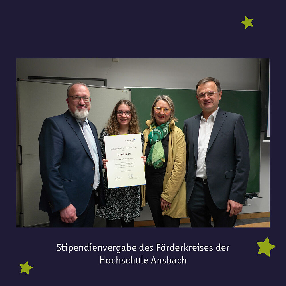 Am Dienstag, 29. November, fand an der Hochschule Ansbach die Stipendienvergabe des Förderkreises statt. Die Stipendien wurden an die Studentinnen Tatjana Krackhardt, Daniela Sabine Hollstein und Sanja Saric überreicht. Alle drei haben ausgezeichnete Studienleistungen während ihrer Auslandsaufenthalte erbracht.