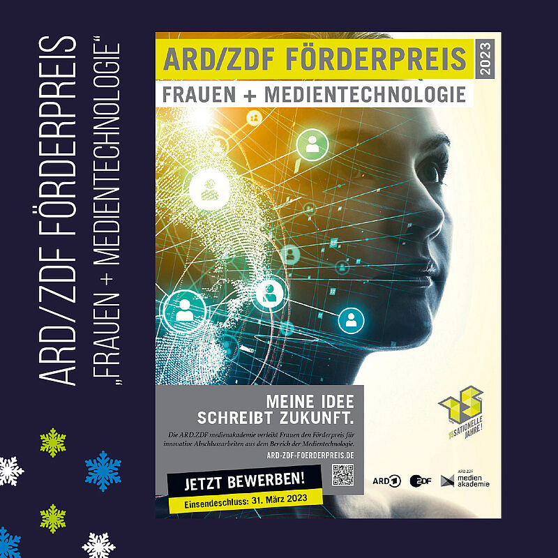 Dann bewerben Sie sich noch bis zum 31. März 2023 für den ARD/ZDF Förderpreis „Frauen + Medientechnologie“!