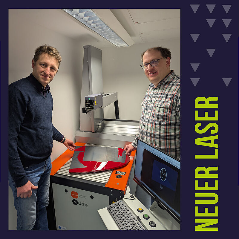 Prof. Dr.-Ing. Alexandru Sover und M. Eng. Markus Zink zeigen sich begeistert über die neuen Anwendungsmöglichkeiten. Die Anlage unterstützt nicht nur Laserbeschriftung, Gravur und Oberflächenveredelung, sondern ermöglicht auch das Entschichten hybrider Bauteile. Diese Technologie eröffnet Wege für eine nachhaltige und werkstoffgerechte Sortierung und Weiterverarbeitung von Materialien.