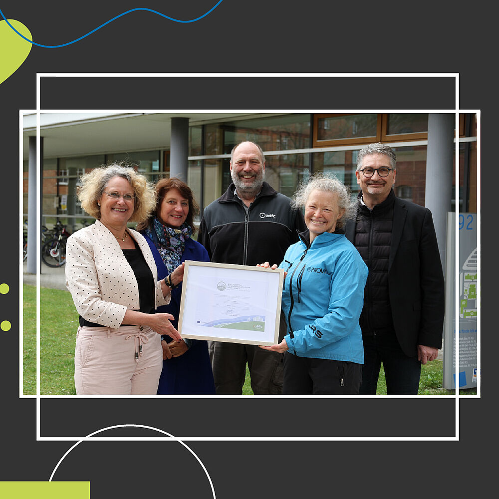 Besonders hervorzuheben ist die Zertifizierung der Hochschule Ansbach durch den ADFC als "Fahrradfreundlicher Arbeitgeber". Damit sind wir die erste Hochschule in Bayern, die diese Auszeichnung erhält. Ein weiterer Höhepunkt war die Übergabe eines E-Bikes an unseren Präsidenten Sascha Müller-Feuerstein. Das Rad wurde durch die Hochschulstiftung zur Verfügung gestellt und soll zukünftig als Dienstrad fungieren.