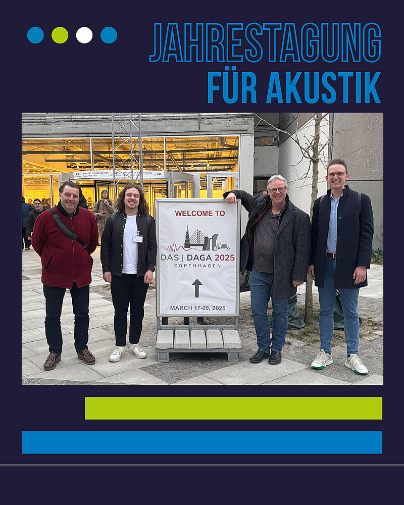 Vom 17. bis 20. März 2025 fand in Kopenhagen die DAS/DAGA 2025 statt – das gemeinsame Jahrestreffen der Deutschen Gesellschaft für Akustik (DEGA) und der Danish Acoustical Society (DAS). Auch die Hochschule Ansbach war vertreten: Prof. Dr. Cornelius Pöpel (Fakultät Medien) und Prof. Dr. rer. nat. Roland Schnurpfeil (Fakultät Technik) präsentierten gemeinsam mit drei Studierenden – darunter Dr. Benjamin Müller und Michael Singer, zwei unserer MUK-Alumni, sowie Pascal Vogel, einem MMP-Studierenden – ihre neuesten Forschungsergebnisse. Mit zwei Vorträgen und drei Postern zeigten sie spannende Projekte rund um Soundscapes, digitale Musikinstrumente, Bioakustik in VR-Umgebungen und interaktive Klangwelten. Ein großartiges Beispiel für fakultätsübergreifende Zusammenarbeit und den starken Praxisbezug unserer Studiengänge.