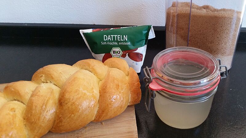 „Wichtig ist die richtige Zuckerkonzentration“, so Prof. Gaisser. „Mit einem Teelöffel Zucker auf 500 ml Wasser erhält man nach 5-7 Tagen ein Hefewasser“. Der Ansatz muss zweimal pro Tag geschüttelt werden, einmal pro Tag muss das Glas belüftet werden. Wenn es charakteristisch nach Hefe riecht, ist der Ansatz fertig und kann verarbeitet werden. Einfach die Flüssigkeit im Hefeteig durch das Hefewasser ersetzen. Hat man einmal eine „wilde Hefe“ erfolgreich kultiviert, so ist der Hefenachschub gesichert. Einfach 100 ml des Hefewassers mit neuem Zuckerwasser für 2-3 Tage kultivieren und danach bis zum nächsten Backen in den Kühlschrank stellen. Jetzt gilt es nur noch zu beachten, dass in dem Hefewasser viel weniger Zellen enthalten sind, als in einem Päckchen Trockenhefe oder einem Frischhefewürfel. Prof. Gaisser empfiehlt, den Teig 20-24 Stunden gehen zu lassen. Damit sich dabei keine harte Schicht an der Teigoberfläche bildet, hat sie gute Erfahrungen damit gemacht, den Teig in einen Gefrierbeutel zu packen. Diesen jedoch nicht fest verschließen, sondern nur locker umschlagen. Über Nacht arbeiten dann die „kleinen Küchenhelfer“ bei Raumtemperatur und machen einen herrlich lockeren Teig. Das Ergebnis kann sich schmecken lassen, wie die Familienmitglieder von Prof. Gaisser einstimmig erklärten.