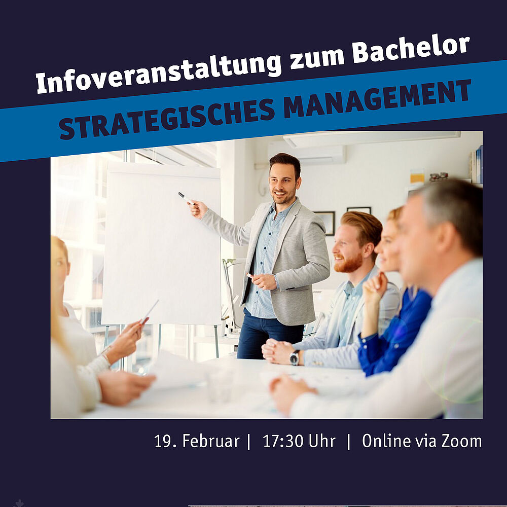 Am Montag, 19. Februar, findet um 17:30 Uhr eine Infoveranstaltung zu unserem berufsbegleitenden Bachelorstudiengang "Strategisches Management" (SMA) online via Zoom statt. Sie können sich über folgende E-Mail Adresse hierfür anmelden: sma(at)hs-ansbach.de