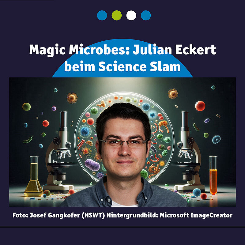 Julian Eckert, Absolvent des Studiengangs Industrielle Biotechnologie (IBT) an der Hochschule Ansbach, steht am 07.11.2024 im Rampenlicht: Beim ersten Freisinger Science Slam wird er mit seinem Vortrag „Magic Microbes – Kleine Künstler auf großer Mission“ einem großen Publikum zeigen, wie Mikroorganismen eine wichtige Rolle im nachhaltigen Umweltschutz übernehmen können. In unterhaltsamer Form vermittelt er, wie biotechnologische Prozesse Schadstoffe – wie Lösemittel aus Lackierbetrieben – umweltschonend abbauen und so zu einer nachhaltigeren Zukunft beitragen.