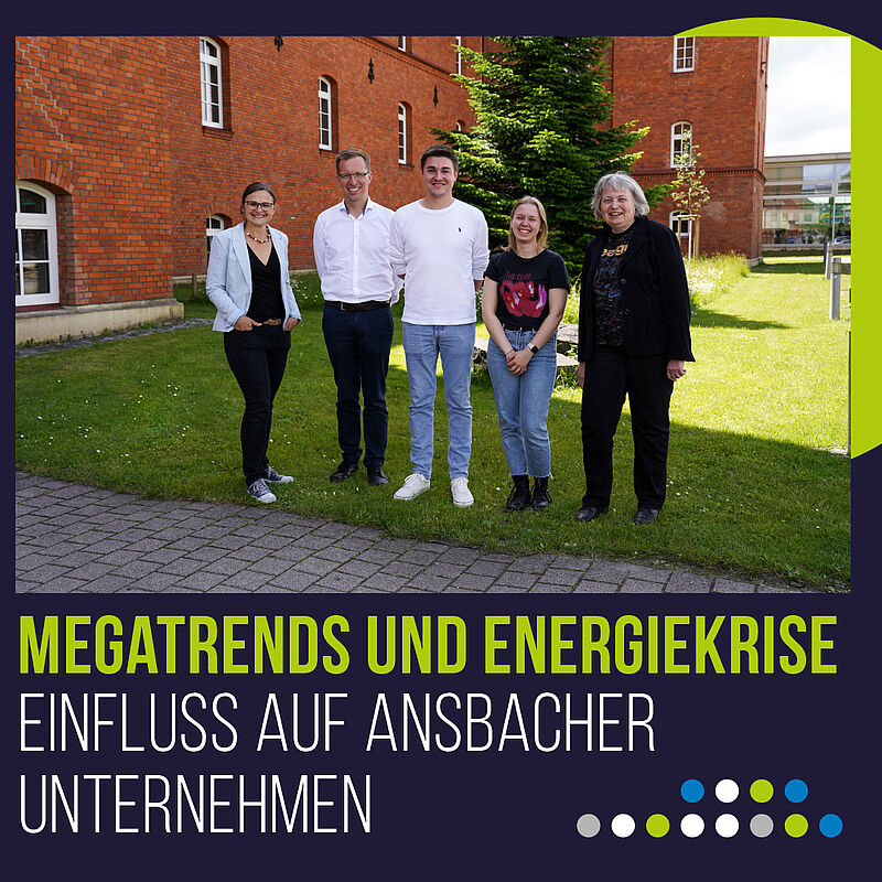 Wie beeinflussen Megatrends und die Energiekrise die Ansbacher Unternehmen? Dieser Frage widmete sich eine empirische Untersuchung, die Studentinnen und Studenten der Hochschule Ansbach im Auftrag der Wirtschaftsförderung Ansbach im Rahmen einer umfassenden Onlinebefragung über mehrere Semester durchgeführt haben. Dazu entwickelten die Studierende im Rahmen der Lehrveranstaltungen von Prof. Dr. Christine Dauth und Prof. Dr. Barbara Hedderich einen standardisierten Fragenkatalog, um die aktuelle und zukünftige Betroffenheit der Unternehmen von Trends wie Digitalisierung, Nachhaltigkeit, Automatisierung und New Work zu erfassen.