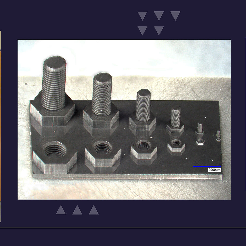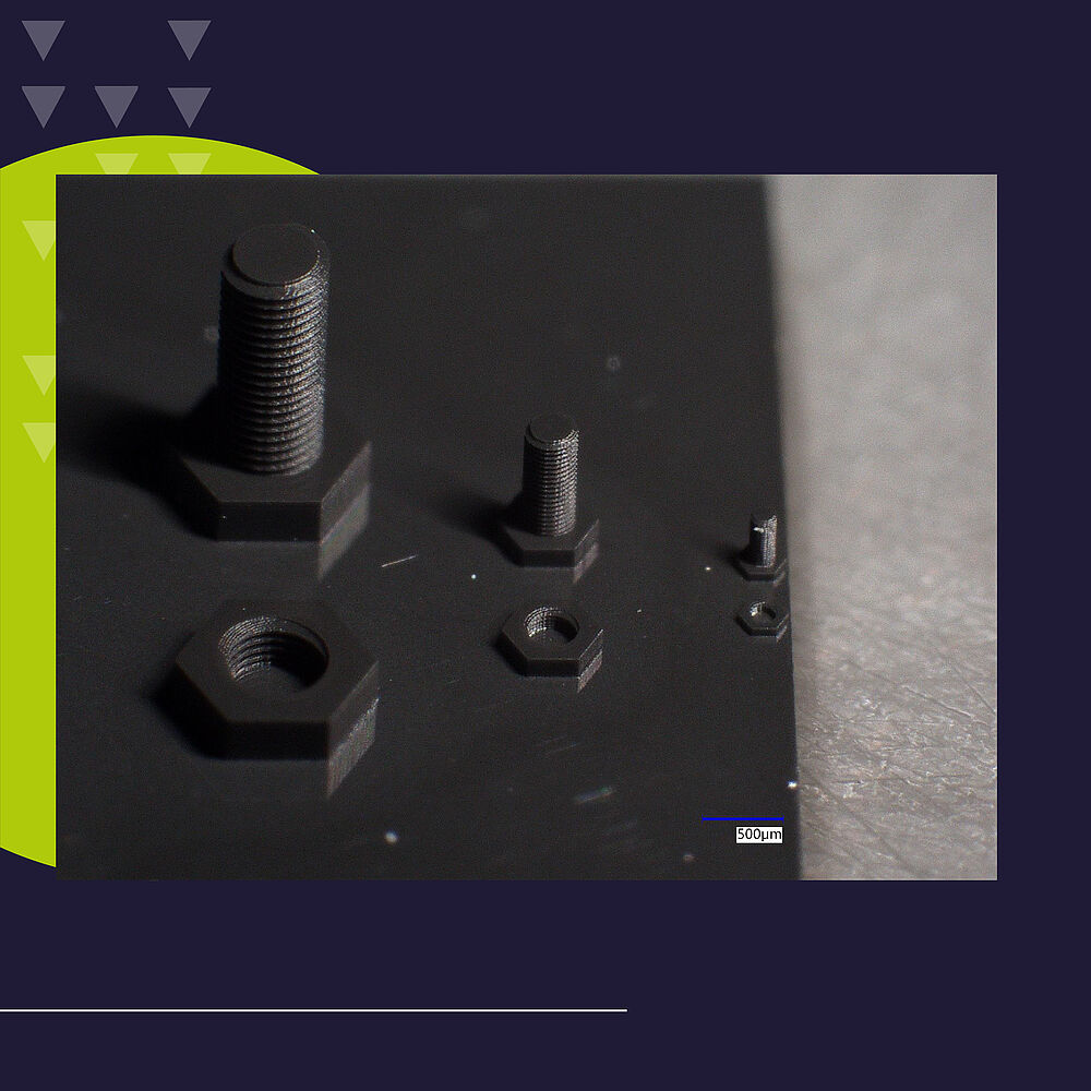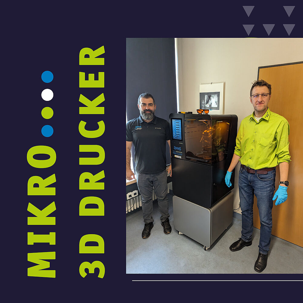 Mit dieser Anschaffung soll auch im Bereich von Mikrobauteilen geforscht und gearbeitet werden. Das hochmoderne DLP-Druckverfahren ermöglicht es, Bauteile mit hochpräzisen Mikrostrukturen, wie beispielsweise für die Einsatzbereiche Medizin und Elektrotechnik, zu fertigen.