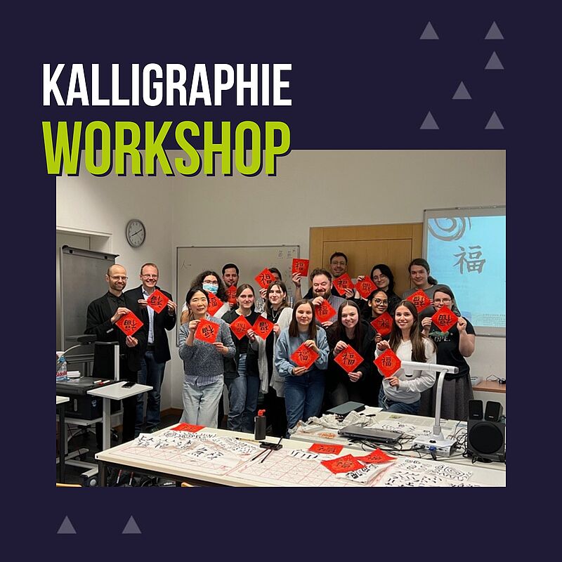 Letzten Donnerstag nahm unser Chinesischkurs unter der Leitung von Dr. Christian Alexander Gebhard an einem Kalligraphie-Workshop teil. Ausgestattet mit den traditionellen Werkzeugen der chinesischen Schreibkunst - Pinsel, Tusche, Reispapier und Tintenstein - tauchte der Kurs in die Jahrtausende alte Kunst der chinesischen Schrift ein.