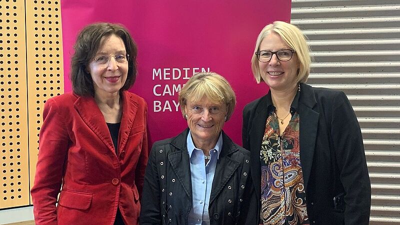 In einer außerordentlichen Mitgliederversammlung des MedienCampus Bayern e.V. wurde Prof. Renate Hermann von den Mitgliedern zur neuen Vorstandsvorsitzenden gewählt. Kerstin Prange von der Bayerische Landeszentrale für neue Medien (im Bild rechts) und Isabella Schmid vom Bayerischer Rundfunk (im Bild links) bleiben als Stellvertreterinnen im Vorstand.