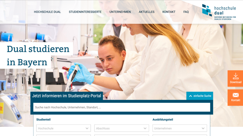 Wo kann ich in Bayern dual studieren? Wie finde ich einen Praxispartner? Die neue Internetseite von hochschule dual – Bayerns Netzwerk für duales Studieren hilft weiter und stellt Schüler*innen, Eltern und Beratungsstellen umfassende sowie praktische Informationen zur Verfügung.