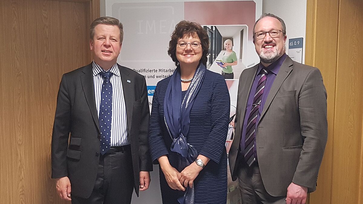 Im Bild: MdL Robert Brannekämper, Präsidentin Prof. Dr. Ute Ambrosius und Viszepräsident Prof. Dr.-Ing. Sascha Müller-Feuerstein (nicht im Bild: MdL Andreas Schalk)
