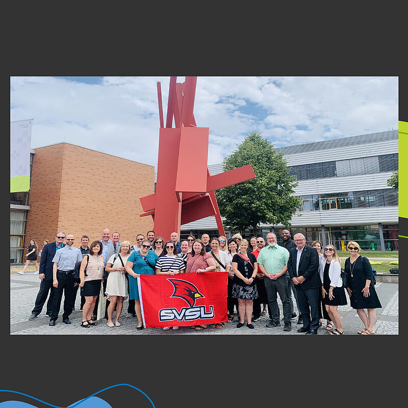 Vor kurzem durften wir eine bunt gemischte Gruppe unserer Partnerhochschule in Michigan am Campus begrüßen. Anlässlich der nachgeholten Feierlichkeiten der Städtepartnerschaft zwischen Ansbach und Bay City war eine Delegation der Saginaw Valley State University (SVSU) bei uns zu Gast.