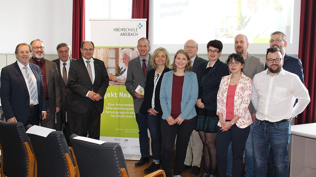 Am 20. Mai 2019 ist der offzielle Startschuss für das Webportal NeaWiS im Rathaus von Bad Windsheim gefallen. Nach Begrüßungsworten von Bernhard Kisch (Bürgermeister der Stadt Bad Windsheim), Christian Schmidt (MdB, Bundesminister a.D.), Hans Herold (MdL), Helmut Weiß (Landrat für den Landkreis Neustadt a. d. Aisch – Bad Windsheim) und Dr. Wolfgang Anderer (Chefarzt Kliniken des Landkreises Neustadt a. d. Aisch – Bad Windsheim) wurde das Portal durch die wissenschaftlichen Mitarbeiterinnen der Hochschule Ansbach, Leonie Hugo und Dunja Zöller vorgestellt.