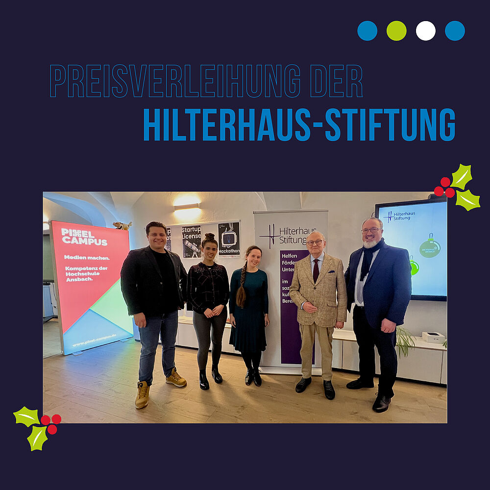 Am Freitag, 9. Dezember, hat die alljährliche Preisverleihung der Hilterhaus-Stiftung im Pixel Campus stattgefunden. Die Stiftung ehrt Studierende der Hochschule Ansbach bereits das 13. Jahr in Folge für ihr außerordentliches soziales Engagement.