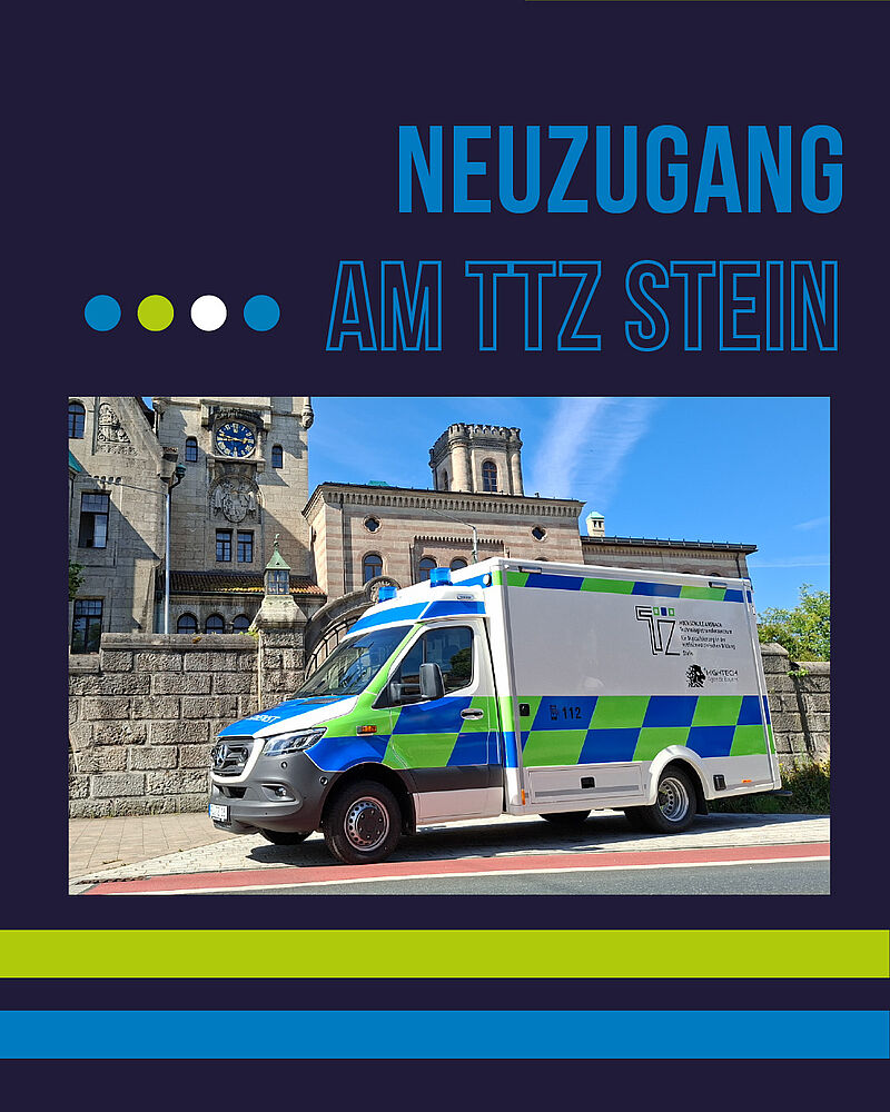 Am Technologietransferzentrum (TTZ) Stein steht ab sofort ein voll ausgestatteter Rettungswagen für simulationsbasierte Ausbildung und Forschung zur Verfügung. Das Fahrzeug ermöglicht eine realitätsnahe Nachbildung präklinischer Einsatzszenarien direkt auf dem Gelände des Zentrums.
