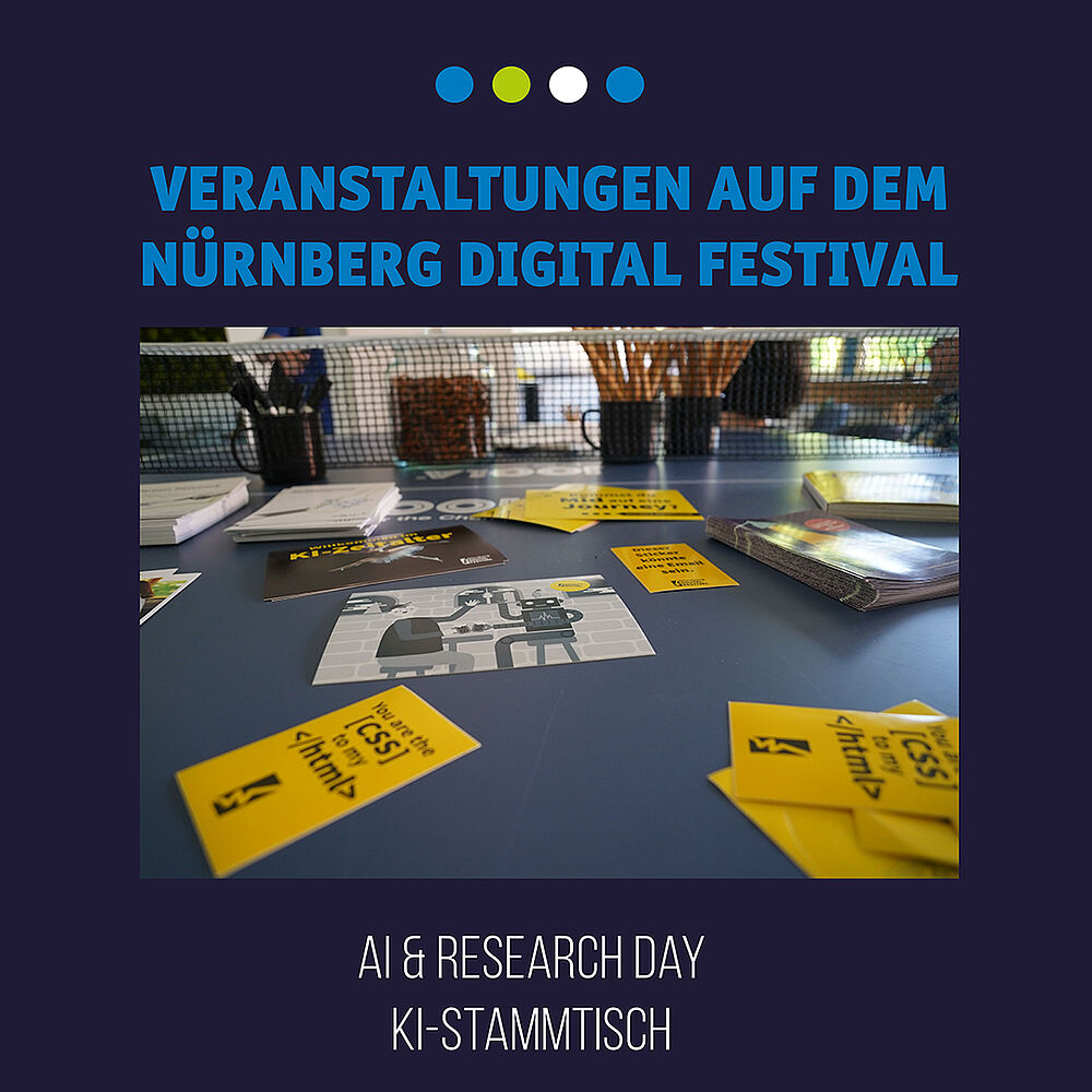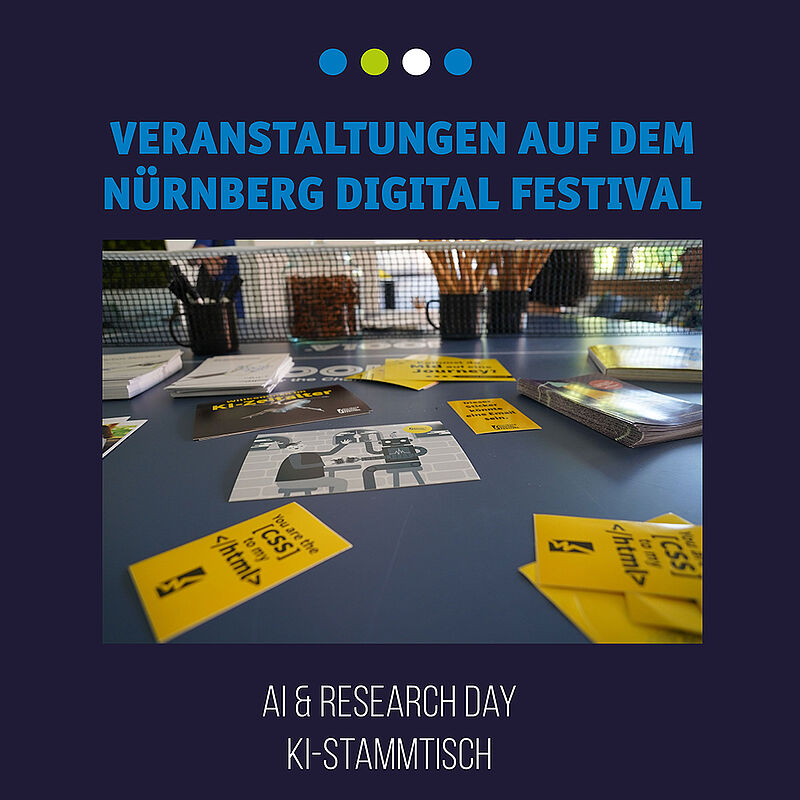 Im Rahmen des Festivals findet der „KI-Stammtisch“ am 04.07. ab 18 Uhr statt. Unter dem Thema „Sustainable AI“ werden Expertinnen und Experten wie Dr. Axel Plinge des Fraunhofer-Institut für Integrierte Schaltungen IIS oder Angelique Thummerer von "Turns" Vorträge über KI und Nachhaltigkeit halten. Zudem können Sie Beispiele der Arbeit am Frauenhofer IIS sehen. Die Anmeldung kann HIER erfolgen.