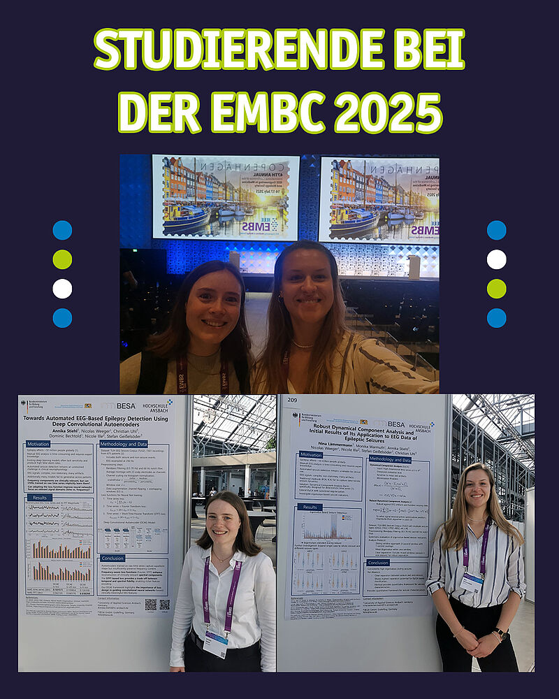 Zwei Studierende haben vor kurzem die Hochschule Ansbach auf internationaler Ebene vertreten. Bei der 47. IEEE Engineering in Medicine & Biology Conference (EMBC 2025) hatten die APR-Masterstudentin Nina Lämmermann und die wissenschaftliche Mitarbeiterin Annika Stiehl die Gelegenheit, ihre Forschungsarbeiten im Bereich der Epilepsieerkennung zu präsentieren.