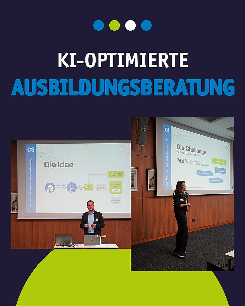 Über dieses Problem und wie es in Zukunft besser gelöst werden kann, haben vor kurzem Anna Pilz, wissenschaftliche Mitarbeiterin der Hochschule Ansbach, und Prof. Dr. Alexander Piazza informiert. Beim KI-Stammtisch „IHK trifft KI“ präsentierten sie das Projekt MiA (Meine individuelle Ausbildungsberatung), das in enger Zusammenarbeit mit der IHK Nürnberg entwickelt wurde.