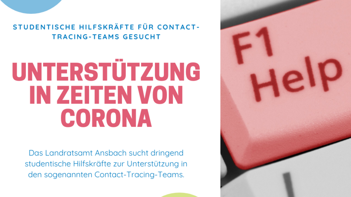 Das Gesundheitsamt Ansbach sucht dringend studentische Hilfskräfte zur Unterstützung in den sogenannten Contact-Tracing-Teams. Tätigkeitsschwerpunkte dieser Teams sind u.a.: