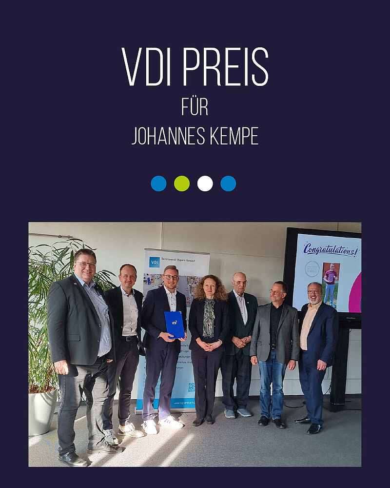 Johannes Kempe, Absolvent des Masterstudiengangs Energiemanagement und Energietechnik (EMT) an der Hochschule Ansbach, wurde mit dem VDI-Förderpreis ausgezeichnet. Der Verein Deutscher Ingenieure (VDI) würdigt mit dieser Auszeichnung besonders praxisnahe und innovative wissenschaftliche Arbeiten.