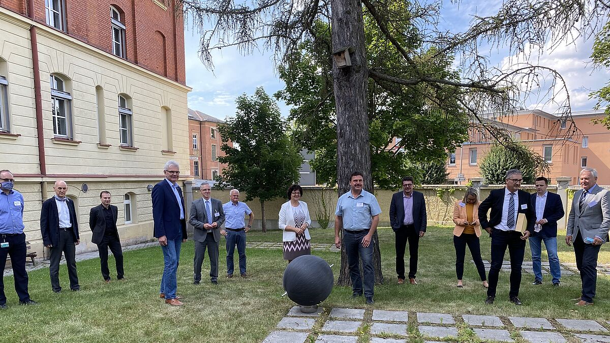 Präsidentin Prof. Dr. Ute Ambrosius begrüßte am vergangenen Dienstag auf dem Gelände der Hochschule Ansbach unter anderem den Bundestagsabgeordneten Artur Auernhammer, die Landtagsabgeordneten Hans Herold, Andreas Schalk und Alfons Brandl sowie die Leiterin der IHK-Geschäftsstelle Ansbach, Karin Bucher, und Peter Stadthalter, Unternehmer im Bereich Wasserstoff.