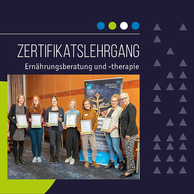 Der konzeptionelle Ansatz der Fortbildungsangebote stellt für Hochschulen und ihre Studierenden einen hohen Mehrwert dar. Das Basiszertifikat der Hochschule Ansbach wird von der Zentralen Prüfstelle für Prävention (ZPP) als Qualifizierungstool ergänzend zur akademischen Ausbildung im Bereich Gesundheit und Ernährung anerkannt. Somit bietet es Studierenden sowie Absolventinnen und Absolventen eine exzellente Startgrundlage für die freiberufliche Ernährungsberatung und -therapie.