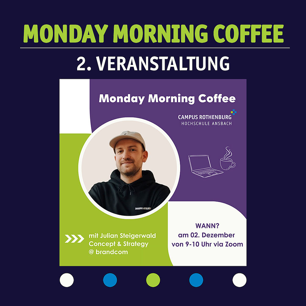 Die Hochschule Ansbach freut sich, Sie zu einer weiteren Veranstaltung der Online-Reihe „Monday Morning Coffee“ einzuladen. An insgesamt drei Terminen im Wintersemester haben Sie die Möglichkeit, spannende Einblicke in verschiedene Themenbereiche zu erhalten und sich fachlich mit Experten und Expertinnen auszutauschen.